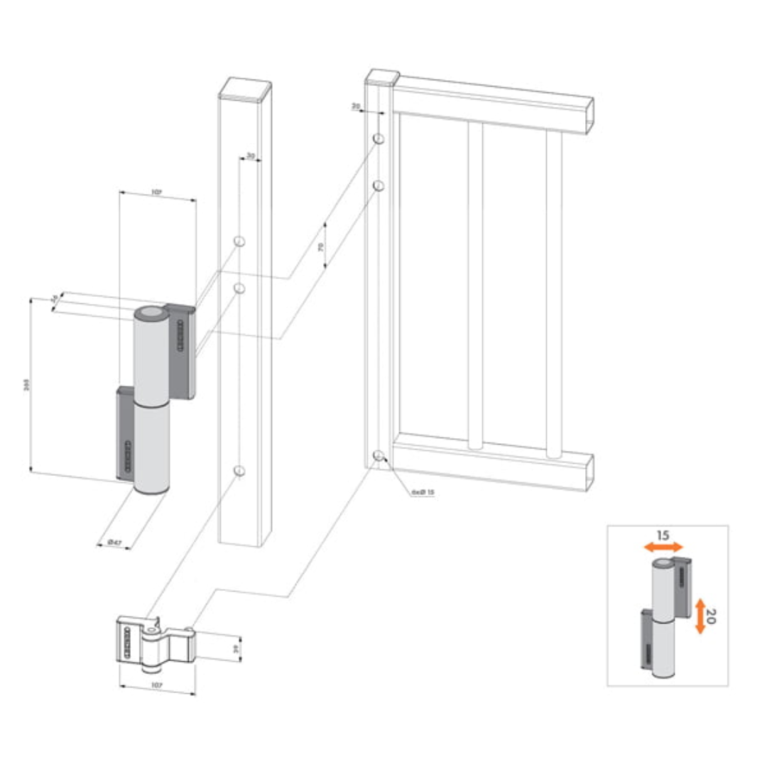 The 180° self-closing hydraulic hinge offers precise adjustments for both closing speed and final snap. Its aluminum powder-coated housing, combined with advanced high-tech components, ensures flawless performance in all weather conditions. For optimal installation, we highly recommend using the Tigerdrill. The Puma hinge is included for enhanced functionality. The Tiger is ideal for gates up to 75 kg and 1100 mm  (4ft) wide.